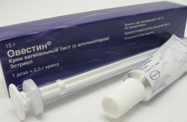Для восполнения эстрогена в организме применяют Овестин крем, который эффективно ослабляет и устраняет симптомы климактерического периода. Особенно эффективен он при терапии дисфункции органов мочеполовой системы. После недели регулярного нанесения крема нормализуется микрофлора, повышается сопротивляемость клеток эпителия инфекциям, исчезает зуд, жжение и сухость влагалища, нормализуется акт мочеиспускания, исчезают симптомы недержания мочевого пузыря.