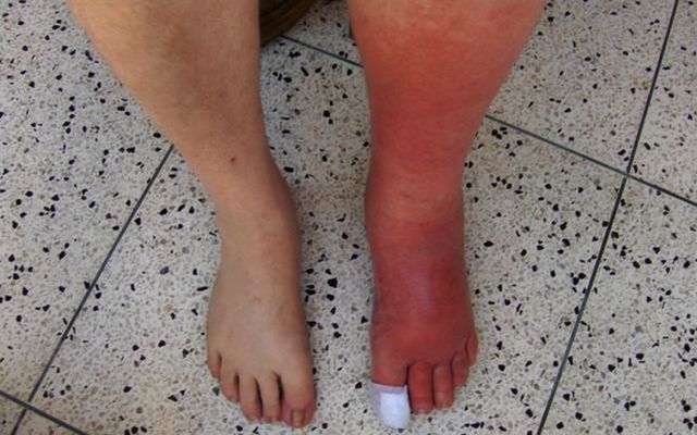 Позже к вышеперечисленным симптомам присоединяется отечность мягких тканей.в пораженном очаге возникает интенсивное покраснение, которое также сопровождается сильными болевыми ощущениями. Пораженные очаги имеет четко прорисованную каемку. Сливаясь, очаги образуют некое подобие географической карты на теле.