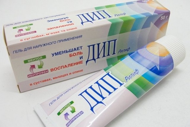 ДИП Рилиф — комбинированный препарат для наружного применения, содержит ибупрофен и левоментол. Ибупрофен — НПВС, при наружном применении оказывает анальгезирующее, противовоспалительное, антиэкссудативное действие при симптоматическом лечении суставов, сухожилий, связок, мышц.