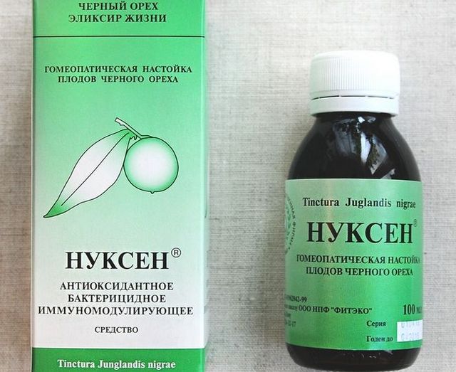В медицине чаще всего используют настойку черного ореха и лечебный бальзам под названием Нуксен, хотя можно сделать данное средство и в домашних условиях.